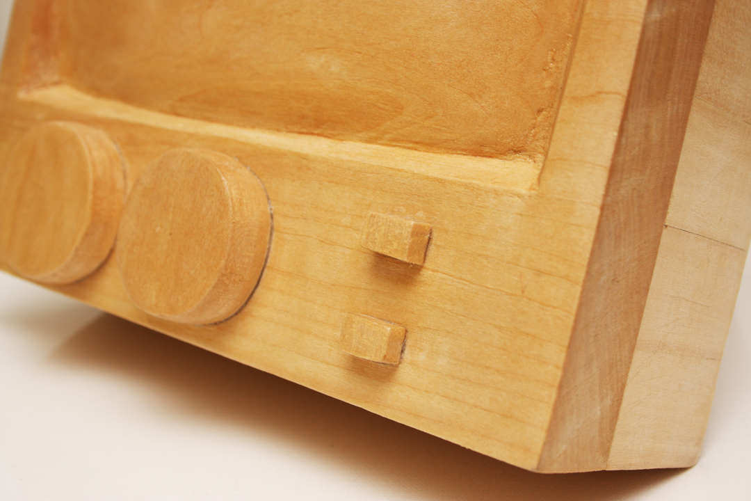 wood.  18” tall, 10” long, 10” wide.  2006.