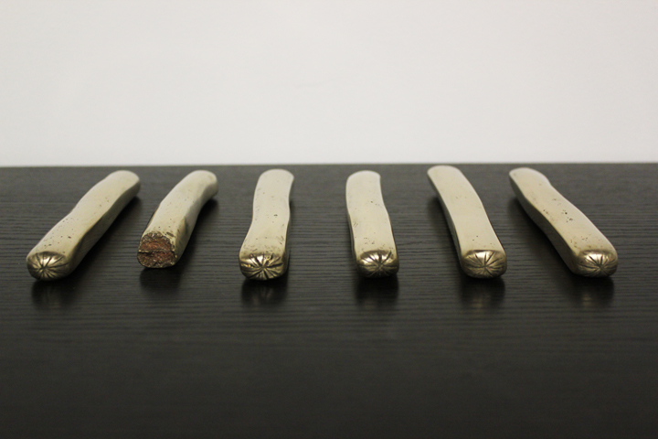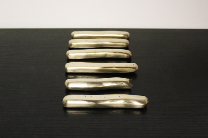 bronze.  each approximately 5” long, 0.75” wide, 0.75” tall.  2009.